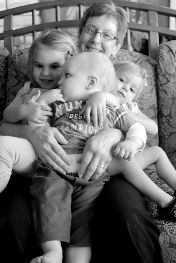 We tried to get a shot of my mom with all the grandkids. Out of about 100 shots, here are the "best of the worst" :) I think there is one actually decent-and-mostly-in-focus picture...